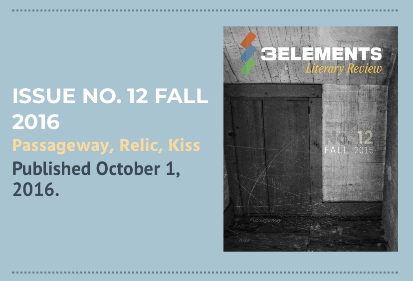 “Kiss” was included in the 3Elements Literary Review “Passageway, Relic, Kiss” Issue 12, Fall 2016