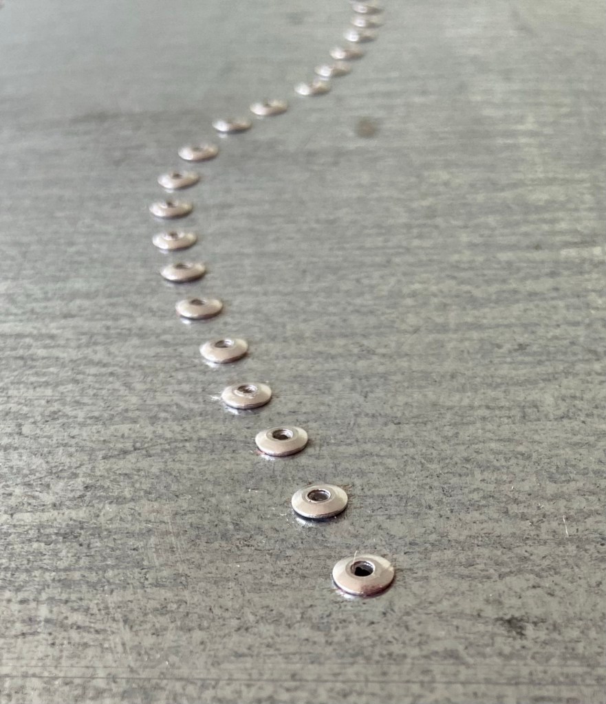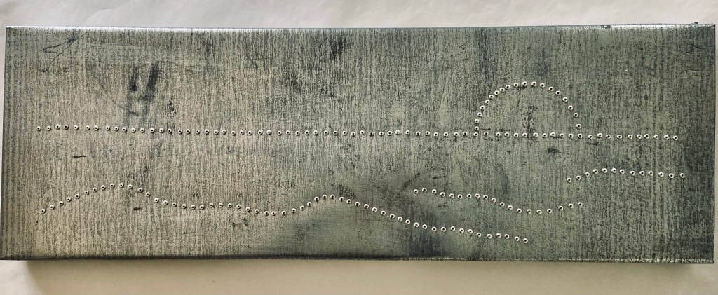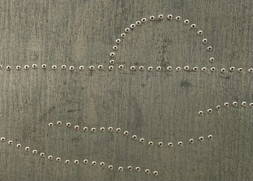 Inspired by the Museum of Flights call for art announcing an upcoming exhibition called Art+Flight. “Riveting” is a landscape portrait made using rivets and repurposed sheet metal.